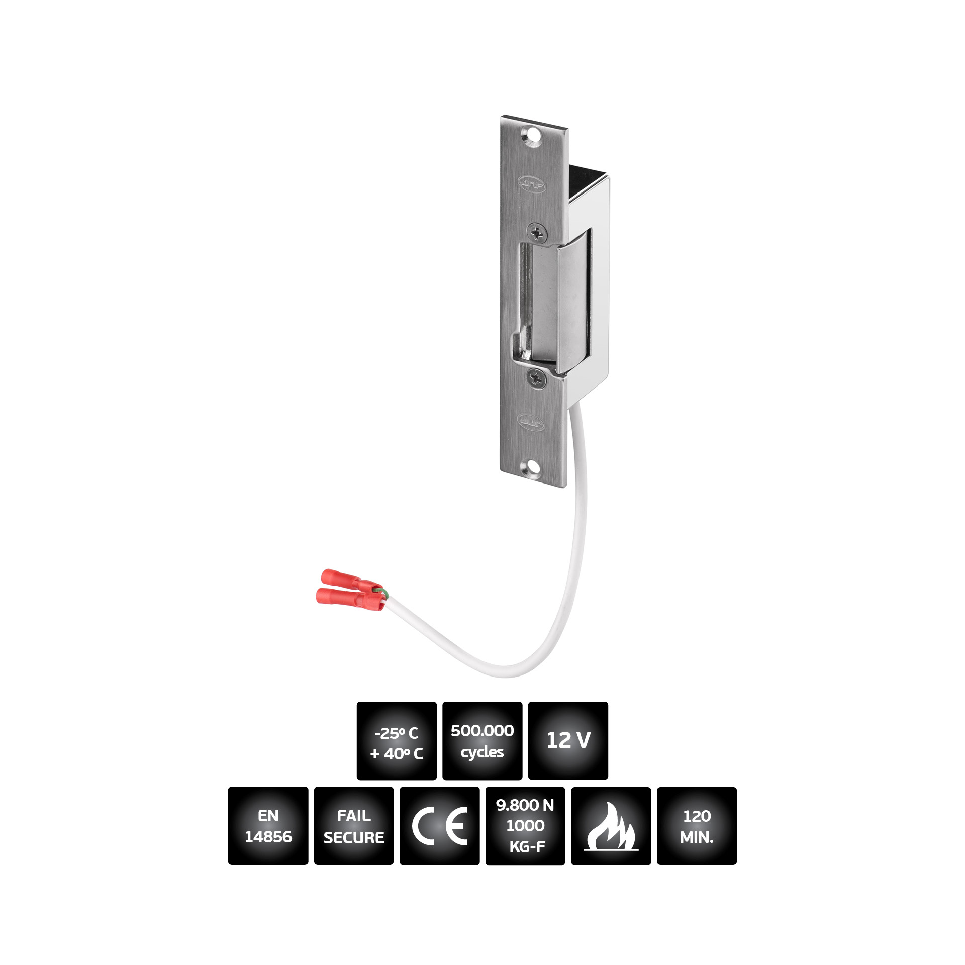 Cerradero eléctrico reversible corta fuego. Corriente de entrada 12 Vac-Dc.